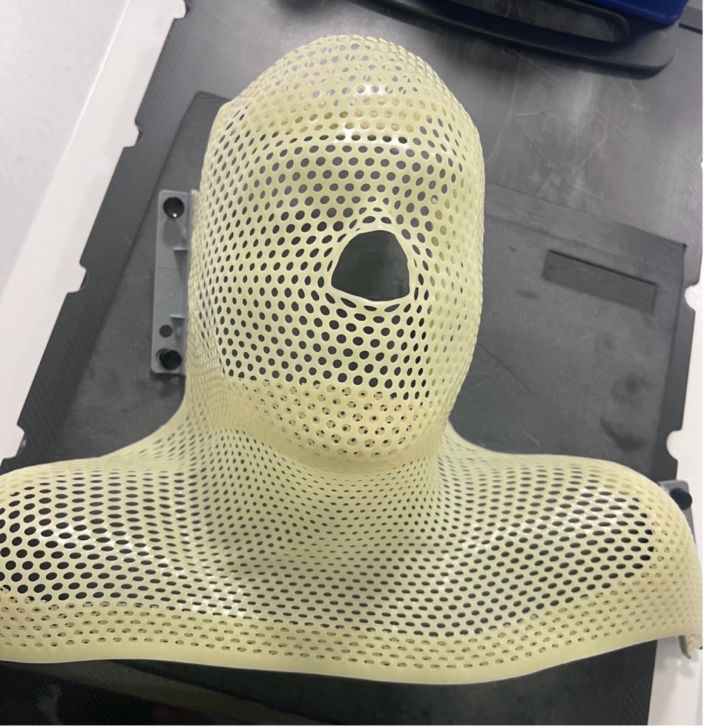 Strålningsmask i speciell värmekänslig plats som formar sig efter ansiktet.
